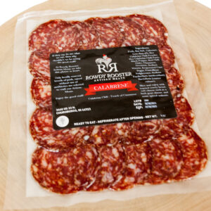 Our mostly traditional Calabrese Salami is a bold, spicy treat with a subtle twist. Crafted with a blend of finely ground pork, Calabrian chili peppers, and traditional spices, it delivers the signature heat and robust flavor you expect from a classic Calabrese salami. The surprise comes in a delicate touch of cinnamon, which adds a warm, slightly sweet undertone that enhances the overall complexity without overpowering the traditional flavors. Slow-cured to perfection, this salami offers a unique and refined take on a beloved Italian classic.